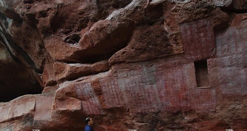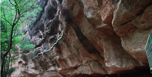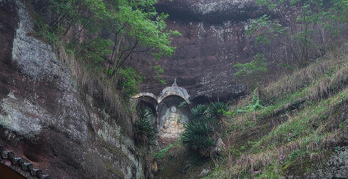 赣州市通天岩素有丹霞风貌独特、岩深谷邃,古木参天,丹崖绝壁,石穴玲珑,因“石峰环列如屏,巅有一窍通天”而名为通天岩。自唐代末年以来,这里便被开创为石窟寺,历时千余年。