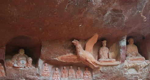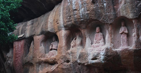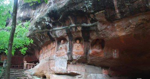 通天岩石窟长1.22公里,宽0.99公里,总面积1200亩。主要由通天岩、翠微岩、同心岩、忘归岩、群玉阁五个石窟组成。景区内岩深谷邃,树木参天,风景优雅。