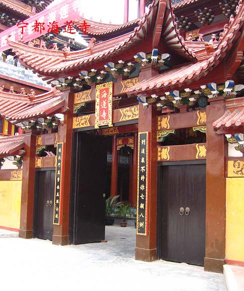 海莲寺位于江西省宁都县城繁华路段长庚门,始建于元朝元贞二年丙申(公元1296年),矩今已有七百余年的历史。原名“海莲庵”,民国二十六年改为今名“海莲寺”。原址地域宽广,莲花祖师、殿堂林立、肃穆庄严、街环水抱,景色宜人,素有“九曲桥下碧波涌,七宝池中夏莲香”之美称。几经岁月沧桑,饱尝时代忧患,历来为外宾现访,信众拜谒,僧侣往来必经之地。系宁都县重点佛教活动场所,中国佛教百大名寺之一。