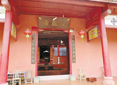 一路行来,只见草木青翠、秀水流碧,越往前行山林越发茂密。天龙岩位于约500米高的山坡上,因前几天下了暴雨,上山的路泥泞不堪,可挡不住笔者一行寻觅普庵祖师行迹的热情。当笔者登上山顶时,不禁眼前一亮,整修一新的天龙寺隐在一片古松之间,隐映蔽蔚,宝象庄严,果然是一处绝佳的修行闭关之所。