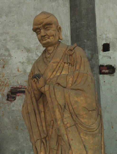 信步走进寺中佛殿,一尊尊栩栩如生的佛像或凝思,或怒目,其线条之流畅,刀法之圆润,让我不得不惊叹雕塑者的精湛技艺.可惜的是,由于资金短缺,佛像没有上金漆,加之平时缺少维护,大部分都已经开裂了,甚至有些已经坍塌.