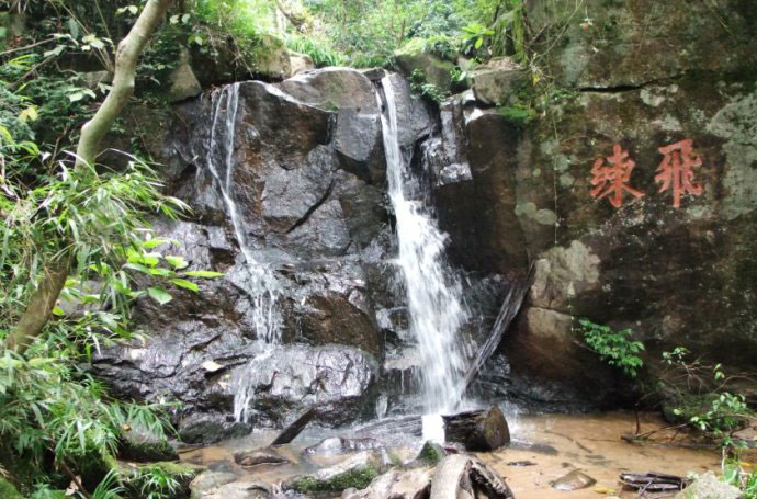 [银瀑飞练] 在逢渠桥上游的50米处,有一处近10米高的瀑布,水流跌落在直立的陡壁之下,形成了银瀑飞练的胜景,真如“白练挂幽谷,银帘抖玉珠”。每当晴天的正午,阳光直射瀑面,映出一道七色彩虹,人们疑为“佛光”。