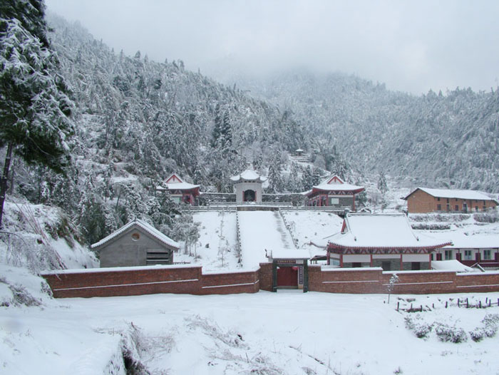 栖隐禅寺背靠的集云峰也是国家AAAA级风景名胜区明月山的群峰之一,“仰山积雪”为宜春八景之一。山麓一片开阔的坡地,小溪沿坡地两侧淙淙而下,最后在坡地前的一个峡口汇流,再穿过山峡奔流而出。坡地前沿,原本建有山门,山门内原有照,地势依次飞升的五进大殿,层层高耸,富丽堂皇,如琼楼玉宇,似西天梵宫。历史上,集云峰一向是宜春县乃至全袁州府的风水名胜之地,也正是僧俗追求清净隐居修禅的极好处所。