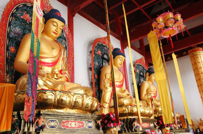 2009年,大雄宝殿前的青白石护栏装修完工。从下仰望,众多游人赞叹有西藏布达拉宫的庄严与雄伟。大雄宝殿内精美的丹霞红(汉白玉的一种)佛台石雕,令人叹为观止。三尊七米高的大佛,两侧十八罗汉,及后两边而立的文殊、普贤菩萨皆为铸铜贴金,神态安详宁静自在饱满,令人肃然起敬。天王殿内的弥勒菩萨、韦陀菩萨也是铸铜贴金,四大天王是生漆脱胎描金彩画。山门殿内的两大金刚同样是铸铜描金彩画。山门殿前面的月台已经完工,并一直铺石板硬化到马路边。禅堂的主体已完工,现在正在装修。方丈室封顶,藏经楼、云水寮、祖师殿、鼓楼也正在开工。小斋堂的完工和启用,让来朝山进香者可以在寺院享用斋饭。万人广场已经推平,这为2011年月亮文化节的举办,提供了广阔的舞台。刚刚竣工的双层石窟为寺院又增添了一处神秘的色彩。观音殿西厢房封顶,东西厢房等已完整竣工。