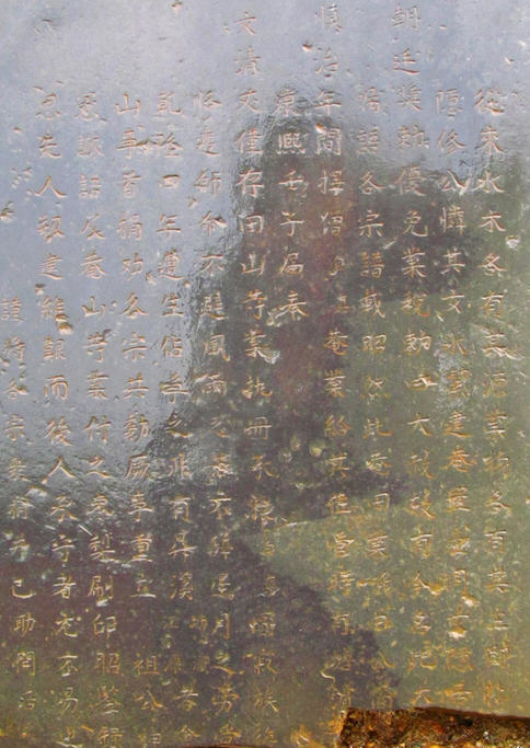 从来水木各有其源,业物各有其主,即此……囗囗 汾,仕唐兵部,奉剿黄巢,为镇饶信,育女金姑,惭哑不字,矢志隐修。公怜其女冰洁,建菴置之,同女隐居……