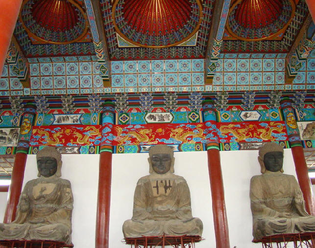 百丈寺经历代战火的毁坏,现今仅存两座建筑即大雄宝殿和僧寮。大雄宝殿是主体建筑物,现存的是同治六年(公元1868年)留下的,长10米,宽12米,高4米,是寺中的正殿。“大雄”意谓佛有大力,能伏“四魔”,是佛教徒对释迦牟尼的又一尊称,即大世界英雄于世独尊。