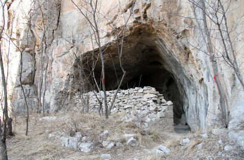观音洞位于湖屯镇陶山西侧的悬崖上。洞口朝西,宽6.5米,洞前有人工砌筑的月台,宽6米,长12米。