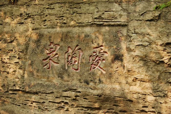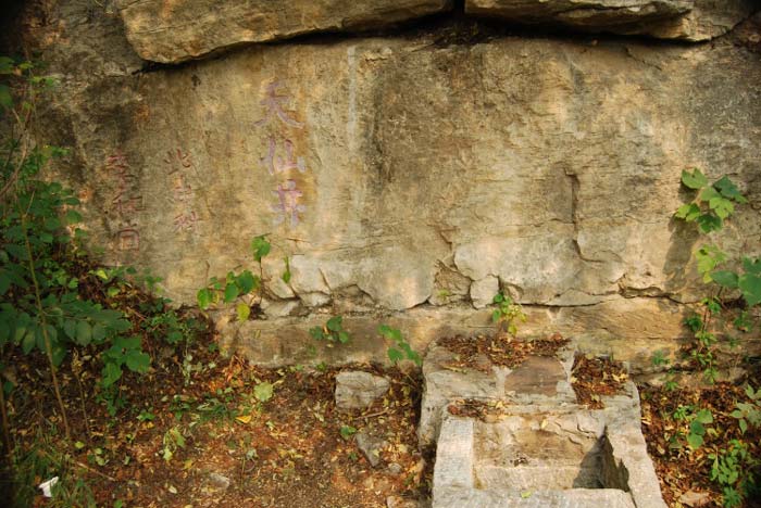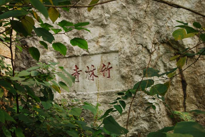 周围的山崖上,有徐茂莘所书“竹林寺”刻字;有赵光湖所书的“三宝”刻字。
