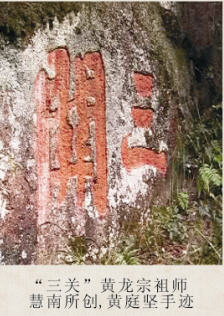 宋治平年间,程公孟为洪都太守,游黄龙寺,捐金置田,并于治平二年(1605)敦请丛林名僧慧南入黄龙寺为住持,是为黄龙第四代僧(见慧南墓石刻墓志铭)。慧南,本信章,信州玉山(今玉山县)人,少年出家,遍参禅法,曾受法于临济宗七世石霜慈明,其至黄龙寺,断往开来,起禅宗于末运,以“三关”说教,开创黄龙一宗。使黄龙寺成为宋代江西四大丛林之一,中国禅宗七宗之一黄龙宗的发源地,因而举世闻各名。《五灯会元》载:“师(慧南)室中常问僧曰‘人人尽有生缘,上座生缘在何处?’正当问答交锋,却复伸手问:‘我手何似佛手?’又问诸方参请宗师所得,却复垂脚曰:‘我脚何似驴脚?’”三十余年,示此三间,学者莫有契其旨。脱有酬者,师未尝可否。丛林目之为‘黄龙三关’。主要理论是“道不假修,但莫污染;禅不假学,贵在息心。”“黄龙三关”强调了学人触机即悟,《禅林室训》云:黄龙室中有三关语,纳子少契其机者,脱有训对,惟敛目危坐,殊无可否,廷之益扣之。黄龙曰:“已过关者掉臂而去,安知有关吏;从关吏问可否,此未透关者也”。丰富发展了禅宗接引学人的方法,开“看话禅”之先河,“三关”基本上概括了黄龙宗的教义,继承了临济宗的禅风,又更看重于通过问答启迪的特点。黄龙寺前三关桥边石亭上即有“已过关者”诸语,寺右化人坑左崖石壁上“三关”二字至今尚存。北宋大诗人黄庭坚深为惠南所折眼,曾盛赞其“真丛林主也”。