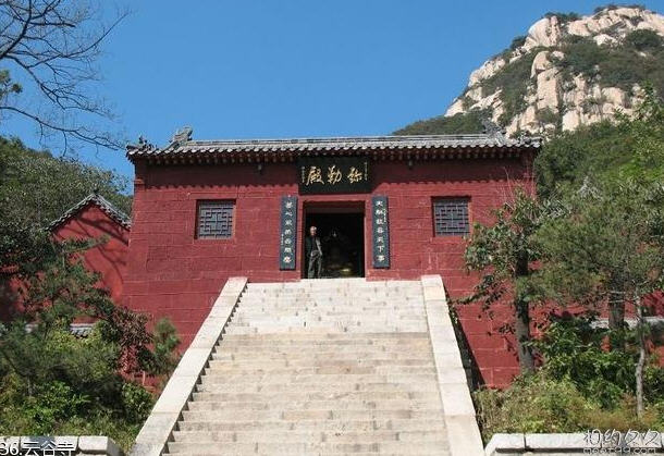 寺门东是云谷寺钟楼。在观音院参观时,大家已了解晨钟暮鼓是我国寺院用来报时的定律,现在不知大家注意到没有,这里只有钟楼,而没有与其相对的鼓楼。有人可能要问,这里面有什么讲究啊?其实没有什么讲究,因为山顶有一块巨大的天然“擂鼓石”,上天赋予,与这座钟楼相得益彰,所以古人在创修云谷寺时,就借景相配,没有再建鼓楼。
