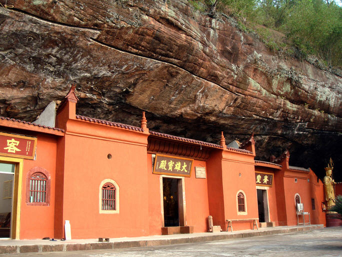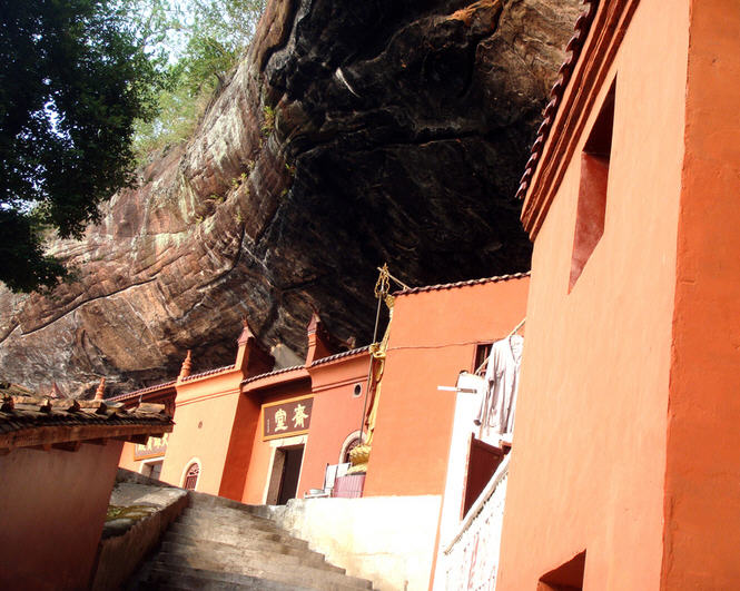 江西赣州市兴国县通慧寺 位于赣南兴国县高兴镇境内,距离县城7公里,全寺均隐身于通天岩内,寺内神龛、神台、香案、供桌都是依山凿成。通慧寺相传始建于南宋末年,文天祥率宋军撤往广东时,将一些难以带走的将士遗孤留在岩洞里,建了这座寺庙掩护他们。清代著名史学家张尚瑗先生登临通慧寺,遥望群峰突起的宝石仙境,捻指细数,得峰数36座,欣然在石壁上题下“对嵩岩”三个大字,嵩者,数目36也。