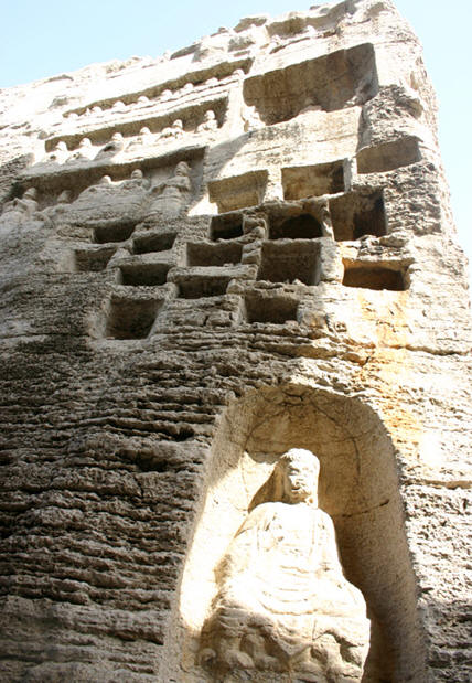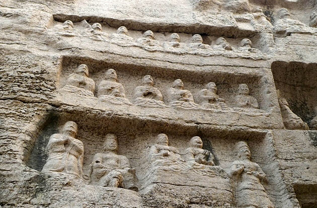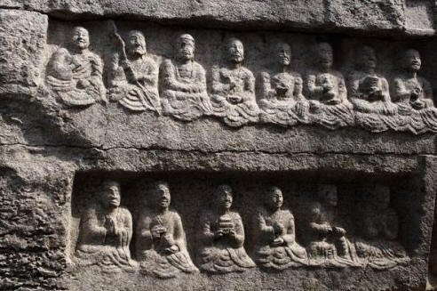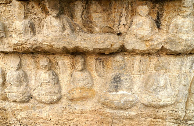 南崖风蚀比较严重,多为唐宋时期的单体佛像和罗汉像。