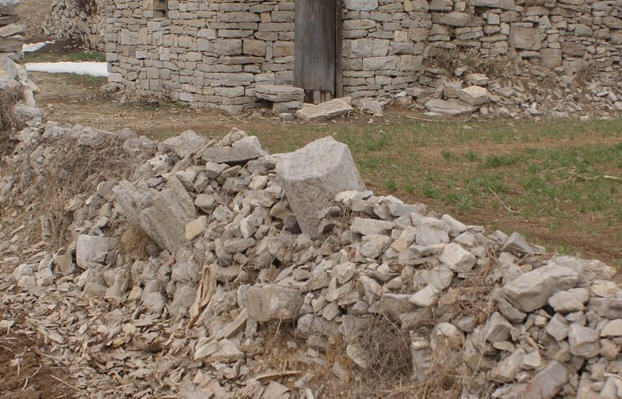在遗址附近遇到一位曾经在这里养牛的大姐,经她指点找到了古塔林遗址,现在已无一座塔存在,也被开垦成了农田,遗址处仅存两座寺内和尚的坟墓。圣佛寺遗址处还能零星看到一些石塔的构建,已经不足以复原。