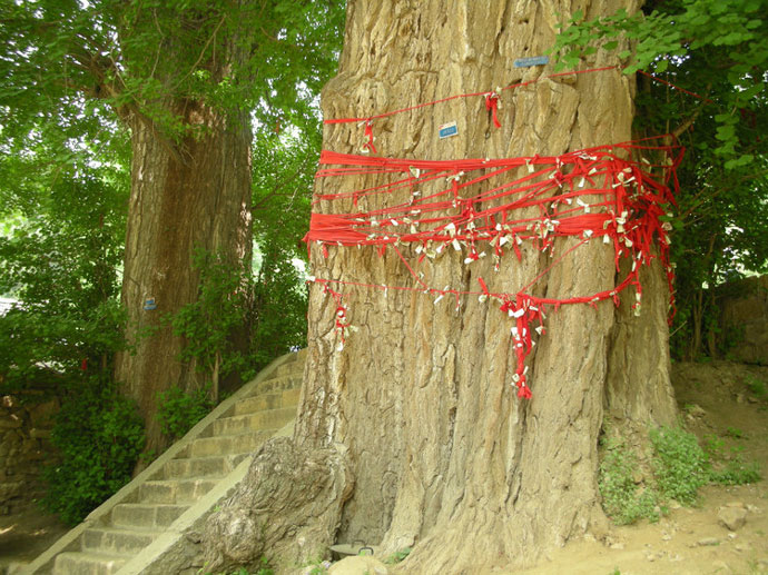 祈福丝带使1300多岁高龄的银杏焕发了童颜