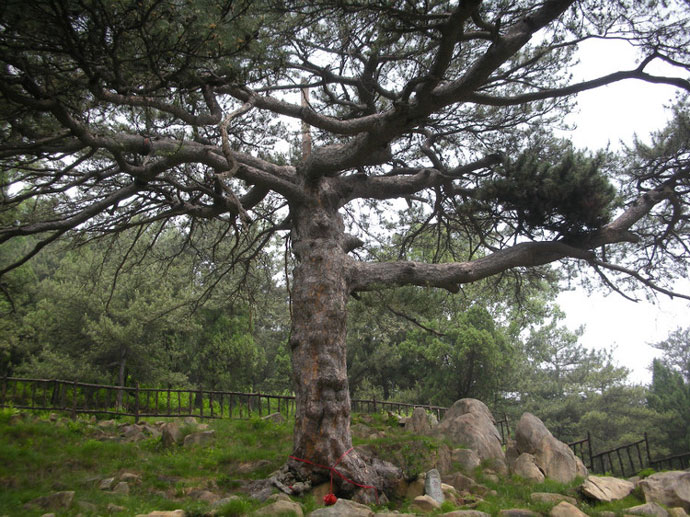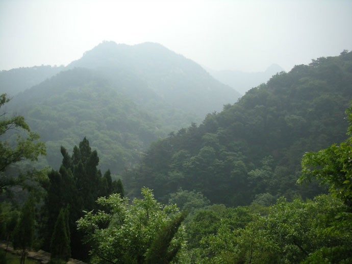 站在大雄宝殿正门向南望去,谷山顶上有棵古松叫“定阳针”,据说,冬至这一天的正午十二点,定阳针树冠的影子恰好落在大殿的门前。还有人做过测算,从大雄宝殿到定阳针、南天门、中天门、岱庙门都在一条中轴线上。古人在没有现代测绘设备的情况下,是如何翻山越岭,透过海拔1500多米的泰山,保持这条中轴线的一致呢?谜一样的祖先留下迷惑的我们在揣度先人的智慧。人缘泰山费半天劲也没能分辨出哪棵是“定阳针”,人云亦云罢了。