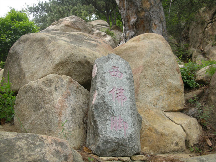 西佛脚不在寺庙,僧人告诉我从寺庙往西沿小路可到西佛脚,于是我和女儿就顺着模糊难辨的小路摸索前行,走了一百多米终于找到了。