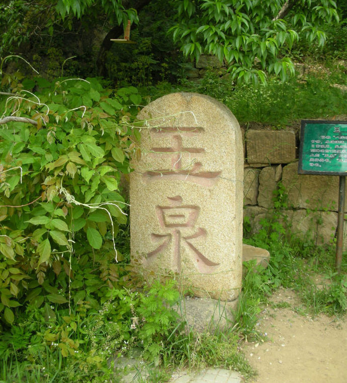 饮水思源,喝罢了茶,自然要去看看那滋润了每个毛孔的甘泉——玉泉。出得寺门,前行几十米左拐既是,玉泉俗称“八宝琉璃井”,是当时寺庙的饮水之源。泉水清澈甘甜,泉涌滚滚,可供百余僧人日常使用。在泉井南侧有碑碣一块,上书“玉泉”二字,是金代大学士党怀英所书。玉泉寺就是因此泉而得名。