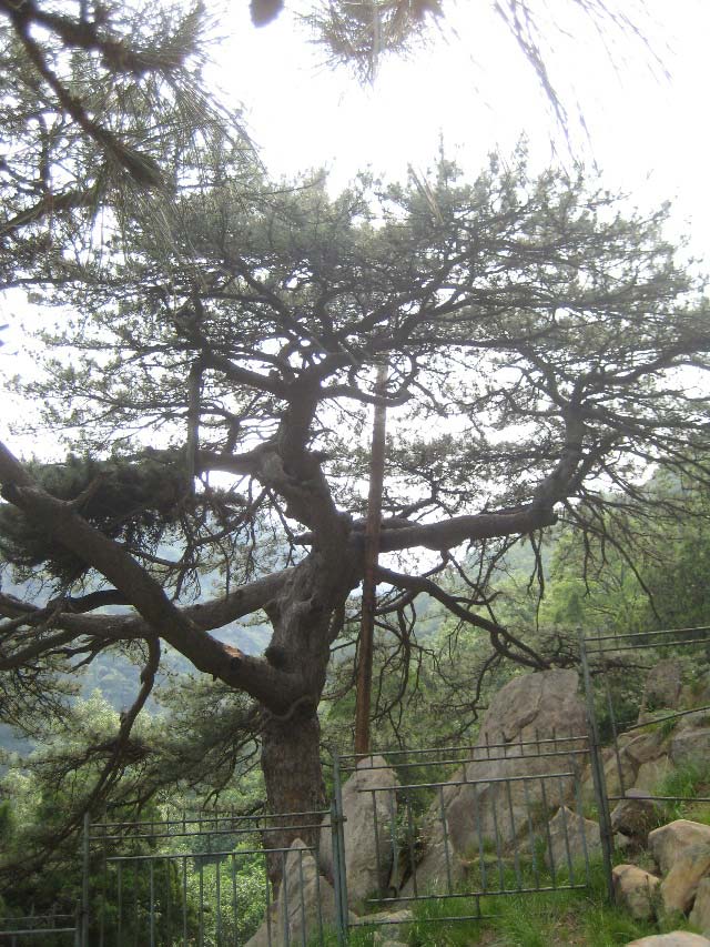 从大雄宝殿出来,该去看看著名的“一亩松”了。这棵800多岁高龄的古松,在寺庙北面山岗上,树冠占地约1.3亩,故名“一亩松”。粗壮的树根露出地面,紧紧地抓住山石,主干凹凸起伏,继续往上看,树冠巨大,遮天蔽日,茂盛的松针郁郁葱葱,长势不减当年。仰望一亩松,不禁让人想起罗中立的油画《父亲》;想起“廉颇老矣,尚能饭否”的诗句。