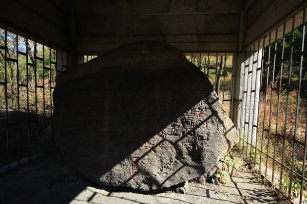光化寺位于徂徕山东南麓,新泰市天宝镇境内。将军石刻经在寺东面的小水库旁边。刻石现为省级文保单位,1997年建亭保护。