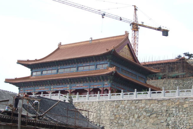 岚山万金君书法俊丽,网络神交已久,赠我清光绪《日照县志》及康熙《安东卫志》校点版各一,急人侠义者也。壬辰立秋前五日,与赵青昆赴岚山访万金并偕游阿掖山。阿掖山海拔三百一十四米,康熙《安东卫志》载:“阿掖山在城东四里,形势端重,冠于群山,诚一方之巨镇也。”山半有建于唐乾封三年之卧佛寺,为海岸古寺之一。光绪《日照县志》有载:卧佛寺“有唐碑,火毁。元大德碑尚存。”亦古安东卫所在也。沂水卧龙寺事初识觉照法师,时在乙酉秋日,听觉照法师说法,遂游阿掖山,时卧佛寺移址重建肇始,百废待兴,近六米之泰国玉石卧佛亟待华屋金装。越明年复造访未见。八年后再访仍不遇,惟主体建筑大概完工,工期缓慢受制于金亦显见也。值班寺僧云云,住持化缘奔波四方,故不得而见之。觉照法师俗名李鹤同,祖籍安徽,护持道场愿高德厚,曾任山东省佛教协会会长,兼连云港海州碧霞寺、日照五莲光明寺、岚山阿掖山卧佛寺住持。