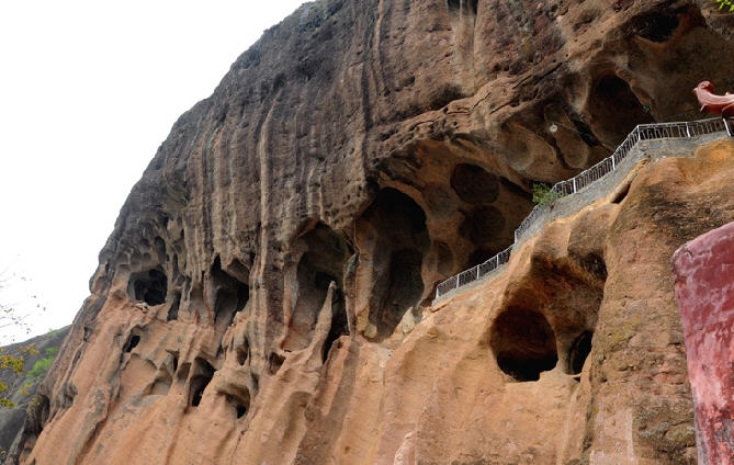 位于寻乌县南桥镇青龙村,此处石岩屹立,岩高数十丈,石窟玲珑,大小百余处,穴下瞰溪坛前为僧寺,佛像成群,其中有一大佛高9.98米,蔚为壮观。