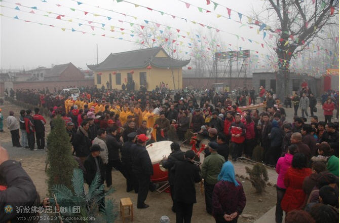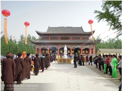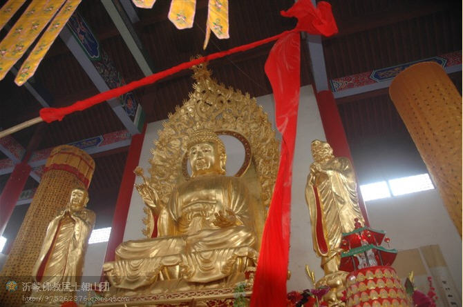 该寺院凭籍蒙山天然河水环绕,承巨龙盘踞雄壮,北拥蒙山大青来定林,西靠岐山峻岭,南对艾山花果,东临沂水之滨。列中枢之位,成通达之势,是自然生态胜区。寺庙座于临沂城西龙盘圣地,左有青龙沂沭河似巨龙腾跃,右有白虎岐山雄踞,前有艾山朱雀展翅,后有蒙山大顶天池玄武水泽,是继泰山圣地又一奇特的地域,且有艾山仰卧龙女千丈法身,昭示于世,实乃浩荡仙苑福地。