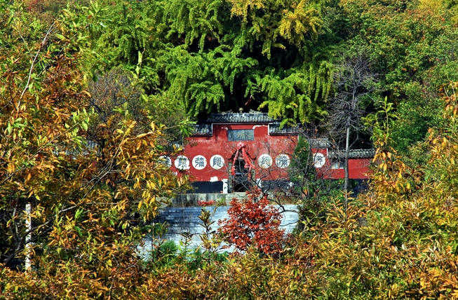 寺院群峰环抱,隐于深山密林之中。前后飞瀑、左右清流、峰峦叠翠、草木荫翳,处处皆景,时景不同。春入:千山披翠、万物争荣、绿的海洋、花的世界、蜂飞蝶舞、鸟语花香。夏至:芳草萋萋、云蒸霞蔚、涧水潺潺、水石清华、山涧沐浴、树荫乘凉,别有一番趣味。秋临:果树满枝、枫红松黛、赤橙黄绿、五彩缤纷。冬来:黛松白雪、河泻琼脂、壁垂玉柱、银装素裹、风光无限。