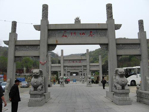 石门寺原名龙门山,位于曲阜东北21公里处的石门山上。因两山对峙如石门,故名石门山。山方圆6平方公里,山中峰回路转,泉涧清凉,林木葱郁。山中有石门寺建筑群,孔尚任隐居处,李白、杜甫宴别处景点,现为国家级森林公园。 石门寺,始建年代不详,宋、明时名全真观,是峰山道场的下院。公元1456年重建为佛寺,更名玉泉寺,习称石门寺。1937年大修。现存有山门、佛殿、后楼、正房等建筑28间。佛殿是其建筑主体,五间,内供三世佛,十八罗汉、观音菩萨。出寺,向西北约许里系孔尚任隐居处,沿路北供药王华佗处。