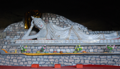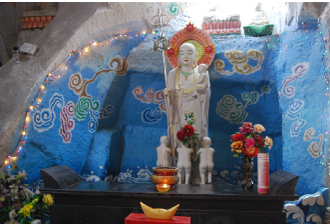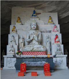 到寺院入口,尚感知不到文化建设的氛围,外围的保护与配合也未能跟上,入寺大道未修、临时通道比较颠簸。进入洞中,却已有多个洞区的殿堂初步可见,包括:3号洞区的法坛、般若堂和救胎地藏殿,4号洞区的大雄宝殿和卧佛殿,2号洞区的圣财宝殿和1号洞区的圆通宝殿。根据“人无我有、人有我优”的开发原则,慈恩寺常住僧人在艺术家们的配合下,在佛教造像上正在作种种造型开发的尝试。