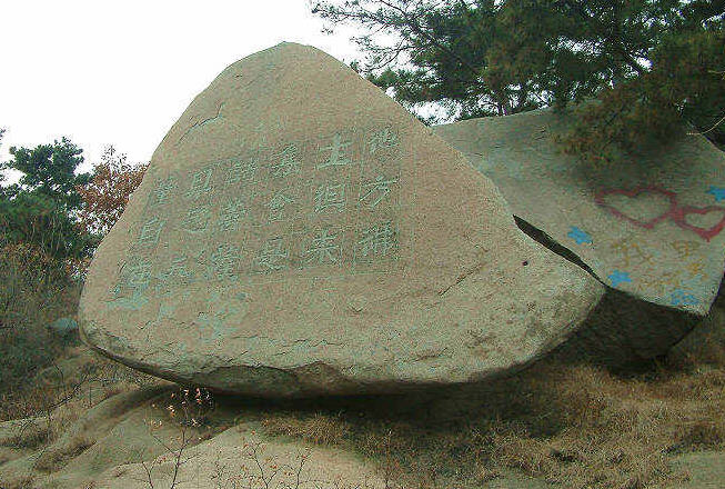 铁山摩崖刻石位于邹县城西北1公里小铁山之阳,面积1037平方米,刻于北周大象元年(579年)。内容为“石颂”、“金刚经文”和题名三部分,书法以隶书为主,间有篆、行、楷。字径大者50-60厘米。岗山在铁山之北,相距500米,二山紧连。刻石有二十六处,刻于北周大象二年(580年),刻字四百多个。