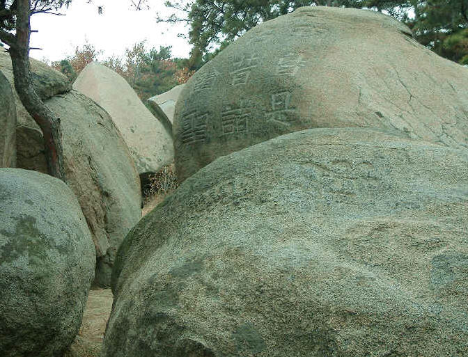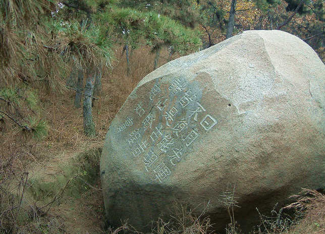 附录:岗山摩崖刻经原文 [《入楞伽经卷一·请佛品第一》] 如是我闻,一时婆伽婆住大海畔摩罗耶山顶上楞伽城中。彼山种种宝性所成。诸宝间错光明赫炎,如百千日照曜金山。复有无量花园香树皆宝香林。微风吹击摇枝动叶,百千妙香一时流布,百千妙音一时俱发。重岩屈曲处处皆有仙堂灵室龛窟。无数众宝所成,内外明澈,日月光辉不复现,皆是古昔诸仙贤圣,思如实法得道之处。与大比丘僧及大菩萨众,皆从他方佛土俱来集会。是诸菩萨具足无量自在三昧。神通之力奋迅游化,善知五法自性识。二种无我究竟通达。。