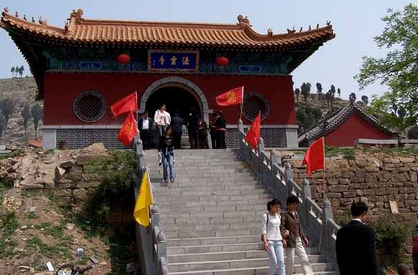 法云寺坐落在嘉祥县城南8公里,是有名的千年古寺和旅游风景区。据史料记载:法云寺又名发云寺,坐落在青山南麓,建于唐代,距今已有1500多年的历史了。过去的法云寺分前殿、东殿和西殿。其中大雄宝殿最宏伟。大殿正面有如来佛祖塑像,前殿塑有四大金刚,四大金刚有的慈眉善目,有的横眉瞪眼,样子很有趣。南殿有玛祖师像一尊,高3米,寺内还有普贤、文殊、观音三大士。另外还有武士、老者、童子和仙女等十数尊。这些塑像衣饰逼真,形象写实。只是在十年动乱时毁于一旦。相伴千年岁月的辉煌历史,法云寺道德远播,在民众的心目中,它不但能给百姓消灾免疫,而且每至干旱之年求神祈雨,这时,便从发云寺山弯里飘出片片云朵,如纱如棉,如丝如绸,姗姗而来,不日便普降甘露,甚至阴雨连绵,连月不开,谓之“发云寺”。2004年1月经报请政府批准,重修法云寺。