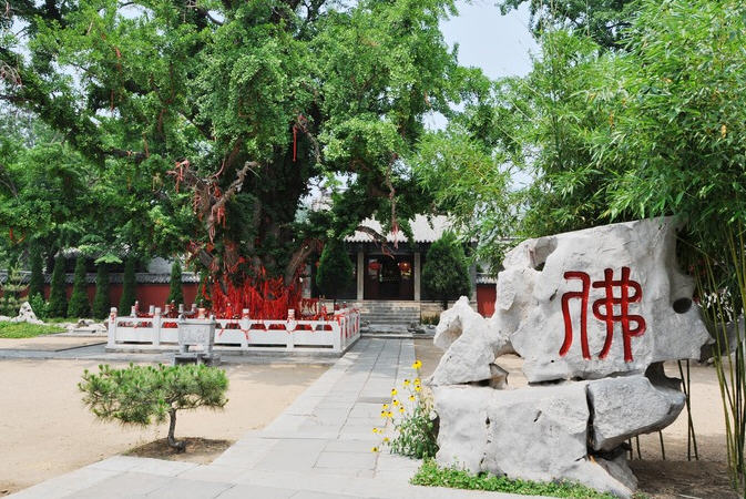 寺院内两株唐代所植银杏树,高20余米,根深叶茂,树冠如盖,其中一株须六七人方能环抱过来,巍为壮观。寺东侧有泉,名日涌珠泉,久旱不枯,泉水从底涌出,如颗颗珍珠泛起,联缀不绝,令人赞叹不已。