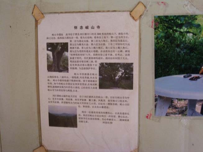 岐山寺据传始建于盛唐时期。毁于清朝嘉庆年间...后经重建,日寇之时再遭重创,后殆净于文革。 岐山寺因座落在岐山山坳而得名,三面环山,一面临溪,风光秀丽,风水宝地。如今的岐山寺,庙已无存,遗址显得异常荒凉,在残垣断壁间,能偶然发现当年的香火盛世。已经没有人知道岐山寺当年的宏伟与辉煌,古老...