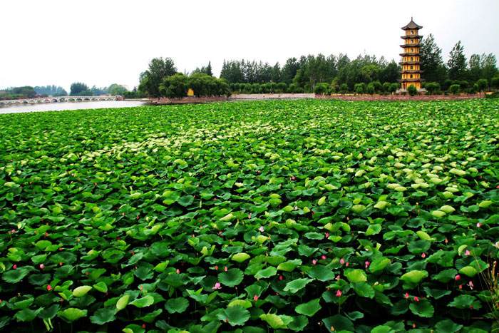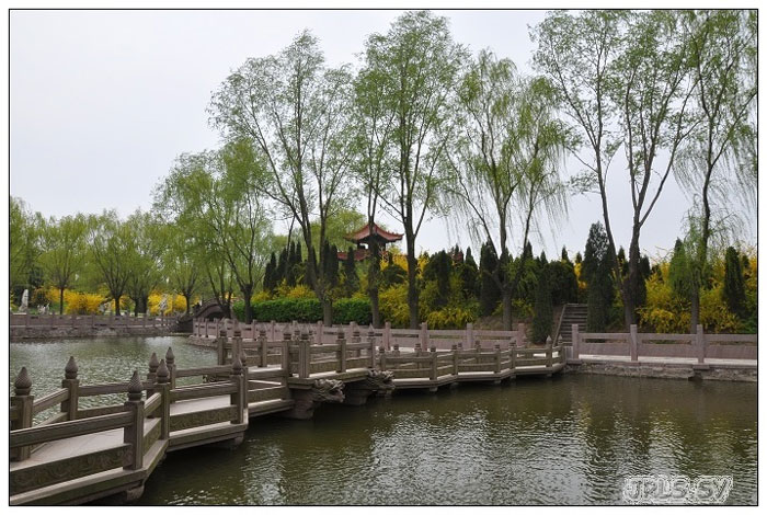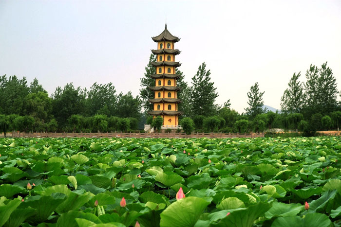 卧佛寺公园气魄宏大,园内既有虎山卧佛、十七孔菩提桥、七级浮图舍利宝塔、莲花湖、九顶莲花山镜台、菱花榭等自然景观,又有卧佛寺、五百罗汉洞、八卦阵、牡丹园等人文景观。既有树木葱茏山势峻峭的九顶莲花山,亦有水面开阔、湖光潋滟的莲花湖。既具有江南婉约秀丽、精致轻灵之美,又有北方山峦起伏、雄伟之势。