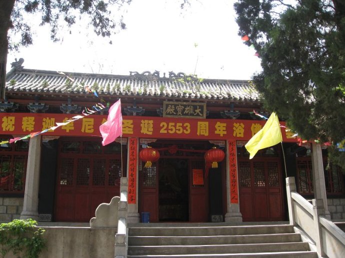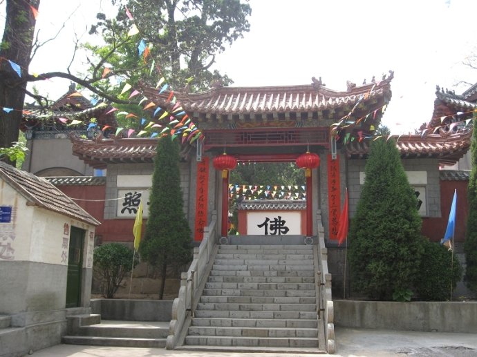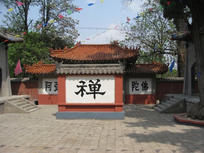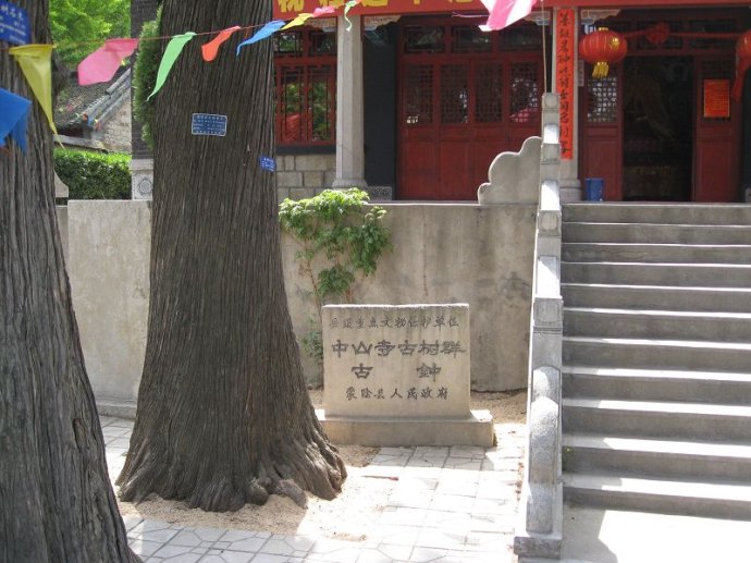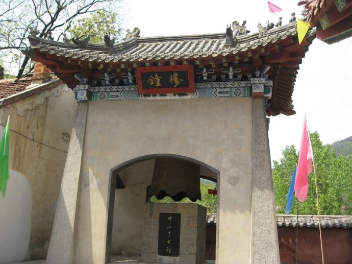 一踏进中山寺院门,一面迎门墙当中而立,白底黑字一个大大的“佛”字一下就把人带入了佛教世界。右手侧一座钟楼,左手侧一座鼓楼,晨钟暮鼓伴随这座古刹迎送了千年的岁月。