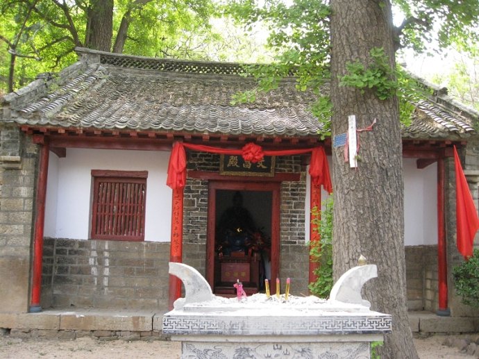 中山寺如此盛名,还沾了些许皇家之气。寺院西北侧原有两块镶嵌在墙壁上的碣石,那是宋真宗赵恒的“御制栖真亭响石”诗碑。《山东通志》称:中山“其实颇巨,空透玲珑,击之声韵清远”。如今响石已不得见,御碑亦不知去向,仅存驼碑的石龟空有负重之术,兀自静卧。但石龟那精美的造型与纹饰昭示了整幢石碑的精巧与华丽,那历经千年沧桑留在石龟身上的痕迹,亦足可供人发思古之幽情了。亲历 深山林中藏清幽