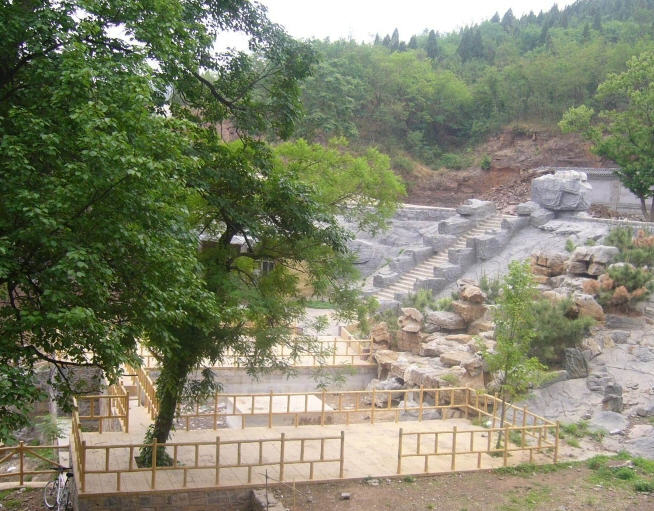 在抱犊崮东麓有一处神秘而古老的建筑,这群建筑在九座山头的拱卫之中,就像九条龙衔着一颗明珠,当地老百姓很形象地叫它九龙寺亦叫龙王寺。从寺中残存的碑文及新近出土的唐贞元年间石碑看,它始建于隋朝,为如来佛行宫,供奉的是释迦文佛,历代王朝都要“敕封榜谕”。史书记载的真正名字叫——灵峰寺 。历史上号称佛刹丛林,清虚盛景,相传为天下三十六福地之一。历代王朝"敕封榜渝",几经修葺,现存遗址佛楼门匾上清雍正皇帝亲笔御书"释加文佛",被古今渴求功名的善男信女顶礼膜拜。灵峰寺鼎盛时期,殿宇轩昂,气势宏丽,300余僧咸集于此,拜佛诵经,香烟缭绕。