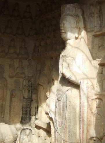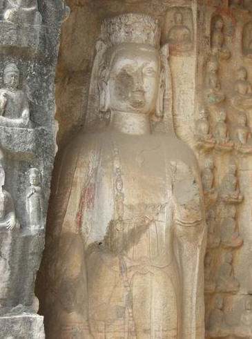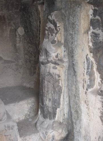 第二窟左肋侍 青州驼山石窟 隋 石灰石 主佛通高283厘米,菩萨高255厘米