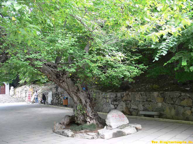 石榴树王。青檀寺毗邻枣庄冠世榴园,此石榴园东西长45华里,南北宽6华里,面积达12万亩,园区内有石榴树530余万株,48个品种,始建于汉代,为世界上最大的石榴园。据记载,汉丞相匡衡(“凿壁偷光”典故即是此人)当年从皇家禁苑中引来榴种,首先在这里建立品种园,然后以此为基点历经数代不断栽培、发展,逐渐形成今天闻名遐迩的万亩园林。