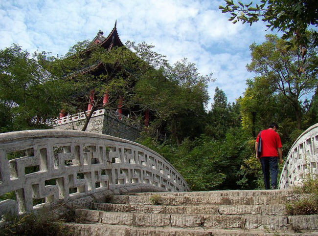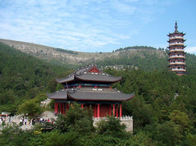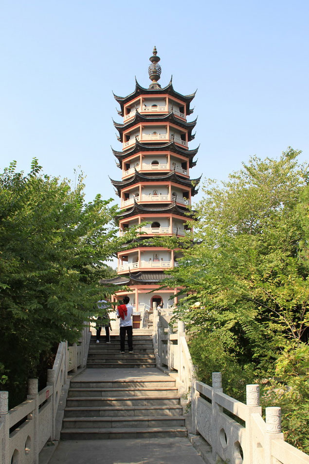 “报国塔”。据称为“江北第一高塔”,高48米,七层八角,巍峨屹立在青檀峡谷尽头,为游客提供了一个听风观雨赏青檀的绝佳去处。但实际济南长青灵岩寺的辟支塔为55.7米,比此塔要高。