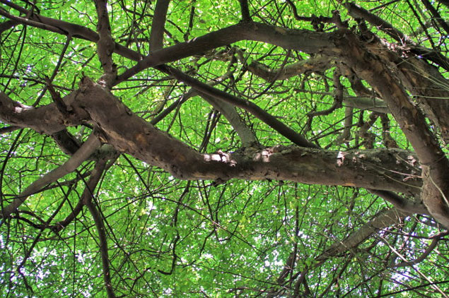 树包石。青檀树喜石灰岩山地,在岩石隙缝间盘旋伸展顽强生长。