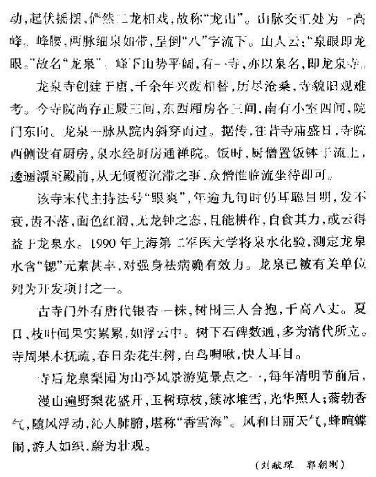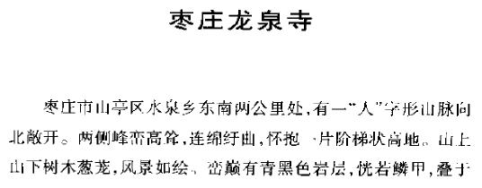 在山东省枣庄市山亭区水泉镇宝峰山九龙峪深处有一座始建于元朝初年的古寺庙,这里山麓四合,峭岩蜿蜒,似龙局盘 又有汩汩山泉绕寺叮咚,故名曰龙泉寺。