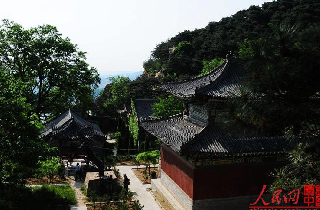 是寺,后经西、东两晋几加扩建功饰,规模宏廓,气势雄伟。寺分东、西两院,西院殿宇佛堂,主要建造有:山门三楹,灰瓦封顶,楣上有匾额,刻“法云寺”三大字。门内迎壁,壁后有天王殿,稍后,其左有钟亭,右有鼓亭,亭为八角式,均建于高台之上,柱间装石栏,顶覆以青瓦。亭西中轴线上,一高大建筑突兀耸起,是该寺主体建筑大佛殿,殿内供奉佛像数尊,多为泥塑金身。再后为大雄宝殿,建于基台之上,复加地处峻崖之巅,高若山齐,非仰视不可见,雄壮而巍峨。二殿前之左右,各有偏殿三间。东院地势偏低,建造有山门一楹,云海阁两楹,说法厅五楹,藏经楼两楹,僧室斋舍、厨房等十数楹。