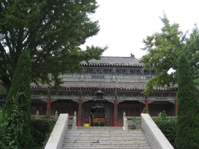 法云寺,坐落于百丈崖西、天衢园东侧一沟谷坳地,位处沂山中心。西倚峻峰玉皇顶,东临玉带溪,左右崇山对峙,绵延东去,气势崔巍,如龙虎蟠卧。这里岗陵迂转回合,松柏浓郁相绕,环境幽僻。但仰望东方,蓝天映晖,豁然开朗。其间,朝夕雾气笼罩,白云沉浮,时有翻腾,故名“发云寺”。由于雾锁云笼,幻象神秘自生,又因佛家尊称曰“法”“发、法”二字谐音,后改名“法云寺。该刹在东镇诸寺中,创建在先,兰若古老,人们又称谓:“古寺”。