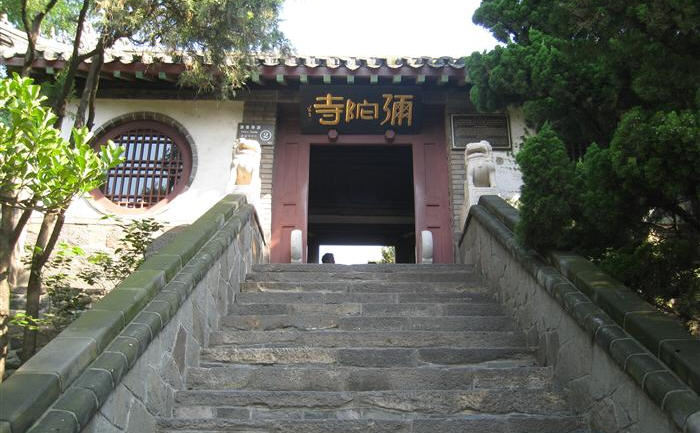 弥陀寺始建于唐代,是蓬莱阁景区内唯一的佛教寺庙。该寺原胜极一时,因禁佛运动,虽没有遭到拆除之灾,也一度僧尼还俗,门庭冷落。