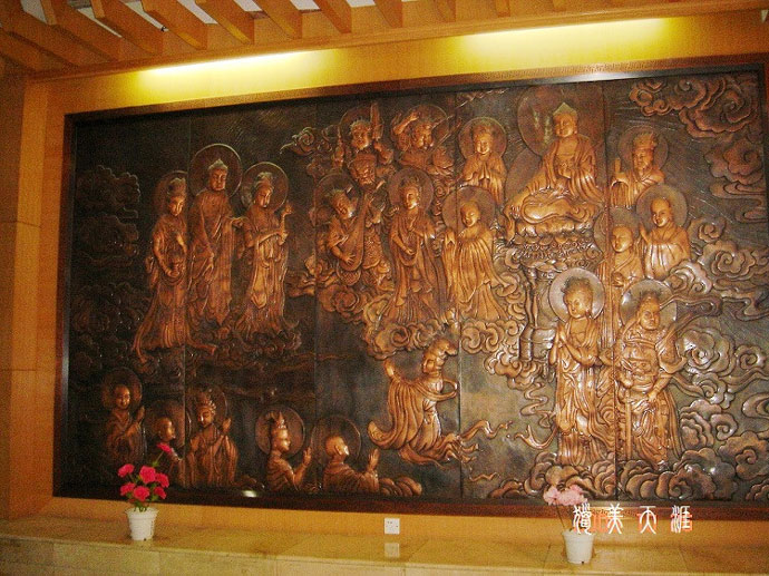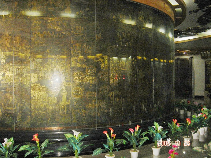 功德堂是铭记善信捐建佛、寺功德的殿堂,南山禅寺大德法师还定期为功德主祈福,殿内镶有31块包含124个佛陀故事的紫金铜雕工艺壁画。