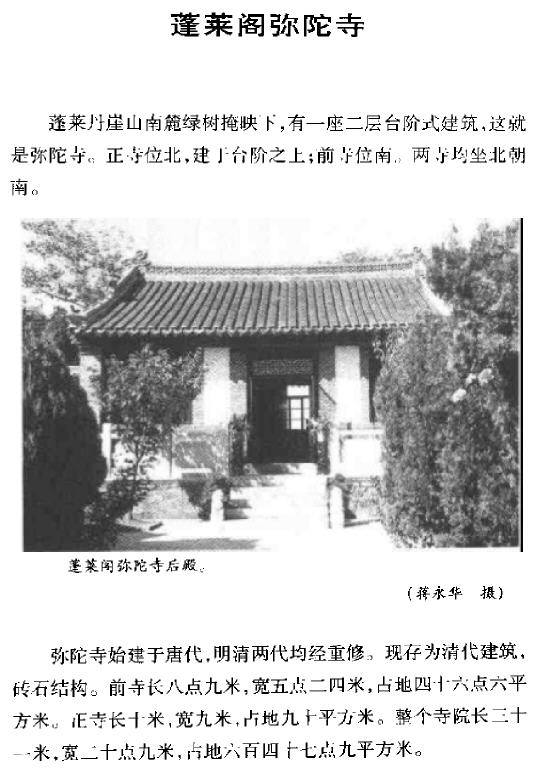 弥陀寺位于丹崖南麓,居整个蓬莱阁建筑群南端,是进了蓬莱景区的第一个景点。
