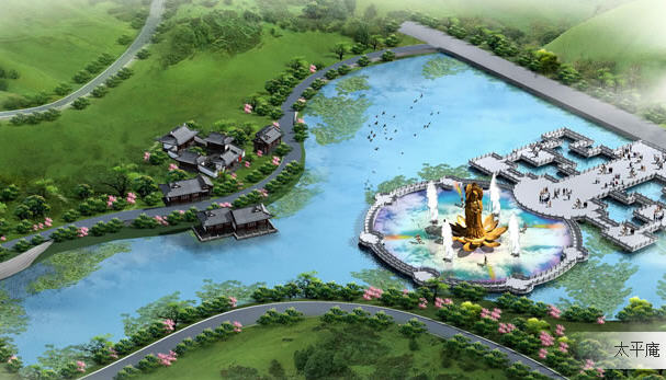 威海市区南郊二十里处的幽静山谷中,有一处颇有名氣的古建築——太平庵古庙群,其建築古樸而宏伟。主要建築由两部分组成:三官廟为主的庙群和龙王廟。三官廟(祀奉天、地、水三官,亦稱三元廟)建在谷中溪水北岸阳坡上与三官庙相毗邻的有关帝庙、蚕姑庙、娘娘庙,娘娘庙前的岁堂,塑有神涂、郁墨两尊把门将军。四棵古柏分植两侧(现只存两棵)。廟门右边的红色粉墙上,嵌有一塊长方形碑刻,记载着廟的建造情况。廟前沿坡而下一百五十米处,南照山下山涧北涯,建有飞鹤欲翔并挂有风铃颇具风致的座南朝北的戲楼一座。三官廟东侧山腰陡崖之上建有龙王廟,从三官庙向东绕山础东行,然后北转,须拾三十二级陡峭、石阶始可达山祀奉龙王及鱼、瑕等海灵。西侧是庙中主持等人的住宅,宅前两棵银杏树高大挺拔,杆粗可两人合围(现僅存一棵)。
