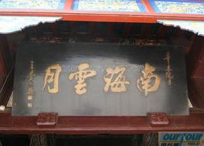 正殿即中殿,修好之后形成左、中、右三殿并列的新庙宇。殿的正门上挂有“回头是岸”的新匾(后改为“南海云月”)。石柱上则刻有: